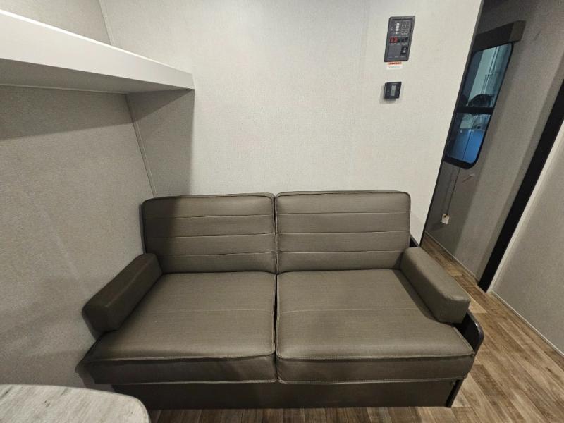 You'll be grateful to find a private bedroom with a laundry chute on this Hideout travel trailer! Now you can hide your dirty clothes after you wear them, and they won't clutter up your living space. The jackknife sofa and booth dinette can be transitioned from lounging furniture into beds at night, and the 52" x 74" bunk beds will provide a place to sleep without taking up much interior space. Use the 10-cubic foot refrigerator to stock up on the items needed to make breakfast, lunch, and dinner, and use the pantry to store any canned goods or snacks you'll want.