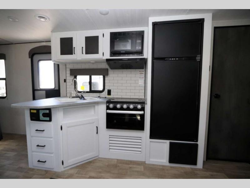The Keystone Hideout travel trailer, fifth wheel, and destination trailer will be just what the doctor ordered for a stress-free holiday at your favorite campsite! There are a few exclusive features that you'll only find on a Keystone product, like the color-coded unified wiring, the preparations for 4G LTE and Wi-Fi, the Tuf-Lok™ thermoplastic duct joiners, the in-floor heating ducts, and the Tru-fit™ slide construction. Each model has a power awning for some shade in the afternoon, and the tinted safety glass windows will prevent the harmful UV rays from getting inside. You'll also have blackout night shades that you can close when you want privacy, and the SolarFlex 200 is a solar power system that will refill your battery to operate onboard 12V systems with just one day of peak sun exposure.