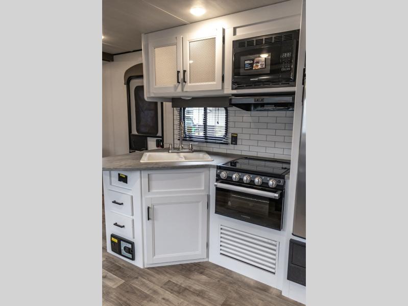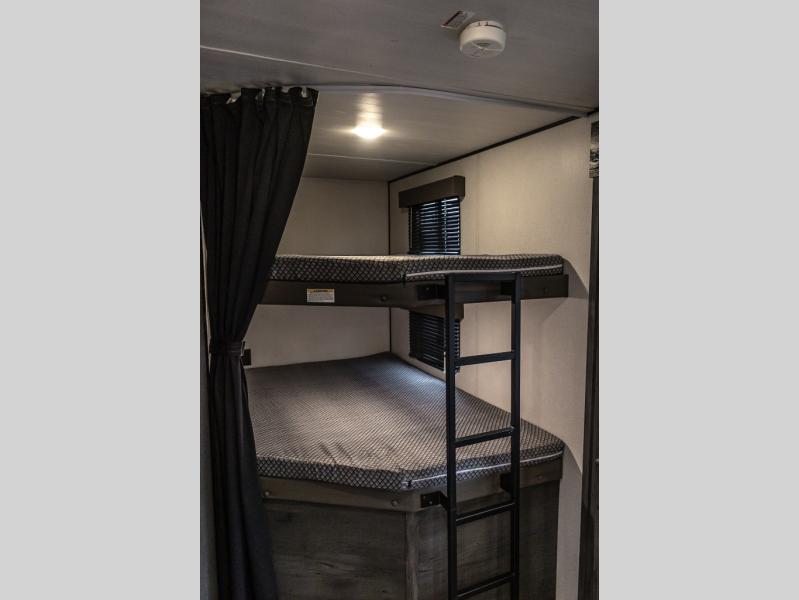 The Keystone Hideout travel trailer, fifth wheel, and destination trailer will be just what the doctor ordered for a stress-free holiday at your favorite campsite! There are a few exclusive features that you'll only find on a Keystone product, like the color-coded unified wiring, the preparations for 4G LTE and Wi-Fi, the Tuf-Lok™ thermoplastic duct joiners, the in-floor heating ducts, and the Tru-fit™ slide construction. Each model has a power awning for some shade in the afternoon, and the tinted safety glass windows will prevent the harmful UV rays from getting inside. You'll also have blackout night shades that you can close when you want privacy, and the SolarFlex 200 is a solar power system that will refill your battery to operate onboard 12V systems with just one day of peak sun exposure.