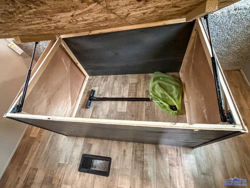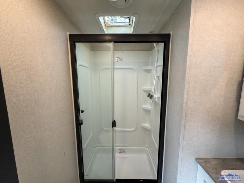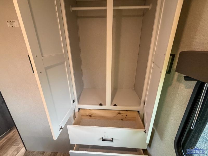 You will be so happy to take this Hideout travel trailer out to the campsite! You have two lounge chairs that you can relax in, and you can create some more lounging space by adding the optional tri-fold sleeper sofa. Not only will this option add more lounge space, but it will also add sleeping space. The booth dinette is another feature that serves two purposes, and it can be changed out for an optional free-standing table with chairs if you don't need it to serve as a bed. With a central vacuum, you'll always be able to clean up throughout your trip, and the 50" HDTV will provide some entertainment while you're stuck inside. A private bedroom sits at the front of this trailer, and it offers you a wardrobe and bedside closets to store your things.
