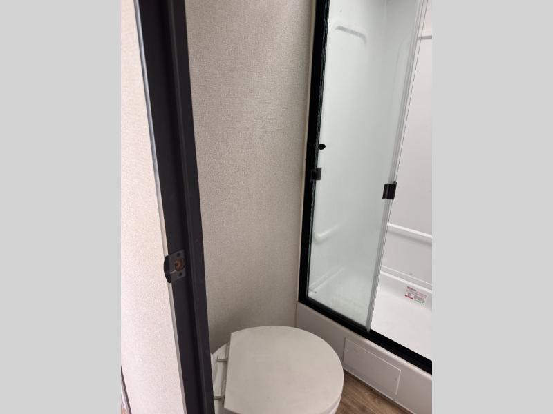 You will be so happy to take this Hideout travel trailer out to the campsite! You have two lounge chairs that you can relax in, and you can create some more lounging space by adding the optional tri-fold sleeper sofa. Not only will this option add more lounge space, but it will also add sleeping space. The booth dinette is another feature that serves two purposes, and it can be changed out for an optional free-standing table with chairs if you don't need it to serve as a bed. With a central vacuum, you'll always be able to clean up throughout your trip, and the 50" HDTV will provide some entertainment while you're stuck inside. A private bedroom sits at the front of this trailer, and it offers you a wardrobe and bedside closets to store your things.