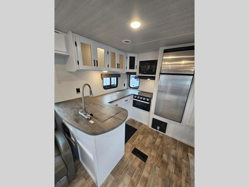 For any trip, whether near or far, you will want a Hideout fifth wheel, travel trailer, or destination trailer by Keystone RV. These models are lightweight which makes them easy to hook up and tow. Just load up your belongings and head out for a weekend away in your own Hideout retreat. A few key features inside of each model include: pleated shades in the living area, a high-rise faucet in the kitchen, and full-strutted storage under the master bed, and the exterior is just as indulgent with its powder-coated I-beam frame, exterior speakers, black radius window frames, hurricane straps reinforced structure, and exterior shower. Don't wait any longer to enjoy your own private hideout with the Keystone Hideout!