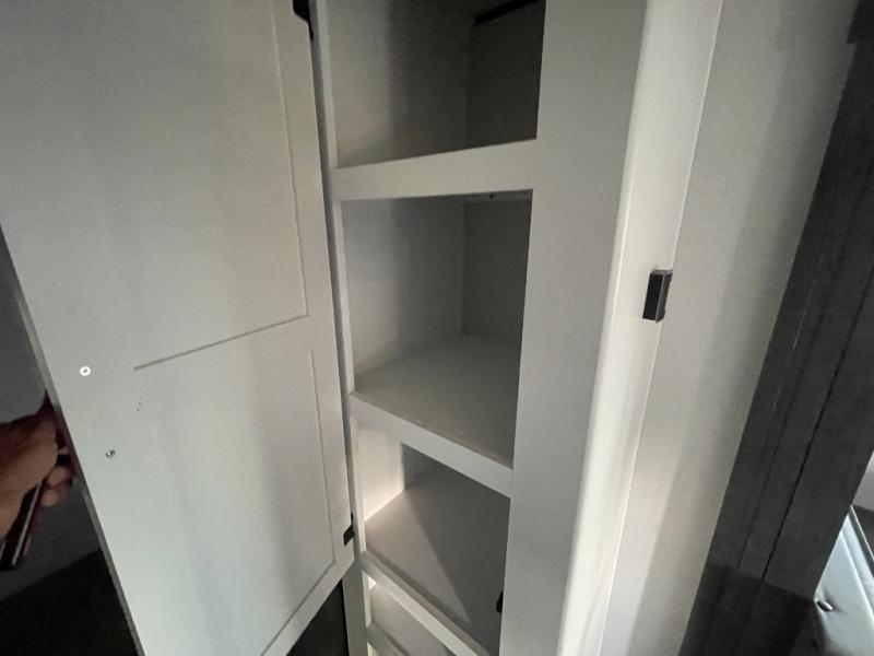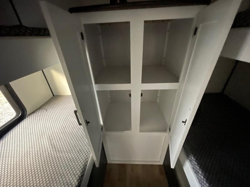 With this Hideout travel trailer, you will have tons of exterior storage! There is a wrap-around storage around the back, and the front has a pass-through storage compartment for even more gear. When you're inside, you'll also notice that you have quite a lot of space to keep items in the bunkhouse closet, kitchen pantry, 10-cubic foot refrigerator, and bedroom closets. The large slide creates more living space, and the central vacuum helps you clean up spills when they happen. This trailer has been prepped for a fireplace, and you can also add an optional 40" HDTV if you wish.
