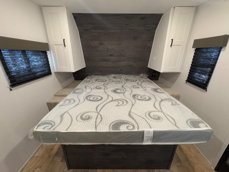 With any Keystone Hideout Single Axle travel trailer, there is an aluminum exterior allowing each to be lightweight for easy towing, the SolarFlex 200 so you can camp off-grid, tinted safety glass windows, and LCI SolidStep entry steps for stability when entering and exiting. The interior is light and airy, and includes a furnace, bedside outlets, blackout night shades, and more. You will also appreciate the Keystone exclusives such as the color-coded unified wiring, the 4G LTE and Wi-Fi prep, the Tuf-Lok thermoplastic duct joiners, the in-floor heating ducts, and the Tru-Fit slide construction.