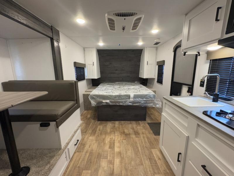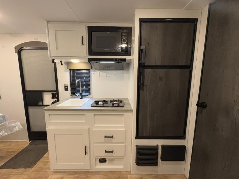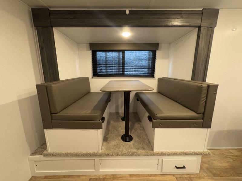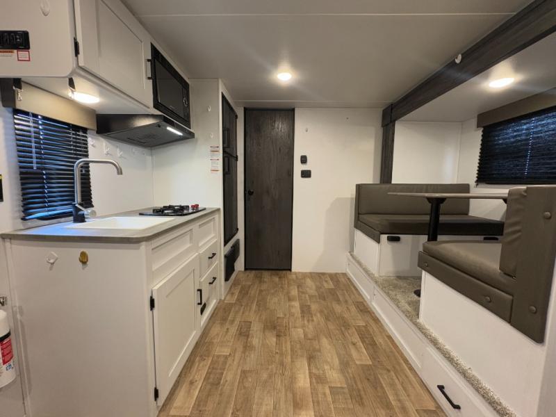 It's time to enjoy the great outdoors with family and friends at the campgrounds you like to meet everyone at! This trailer will allow three to four to camp comfortability with amenities such as a two burner gas range, a microwave, a 6 cu. ft. refrigerator and a spacious rear full bathroom. The booth dinette slide offers a place to dine, read a book and even provides sleeping space and drawers for storage. The slide gives the interior more floor space as well. And the walk-around queen-size bed has two nightstands and closets for storage.