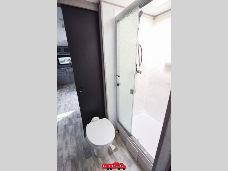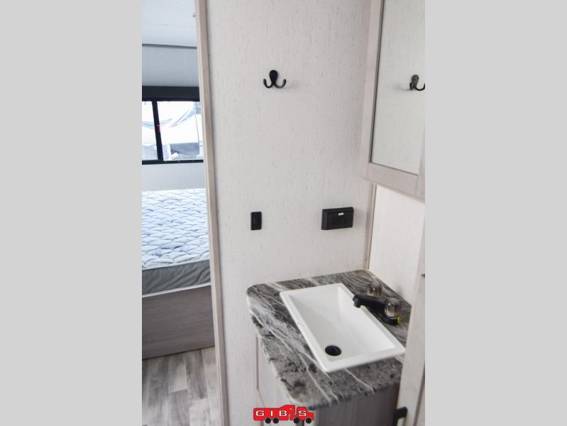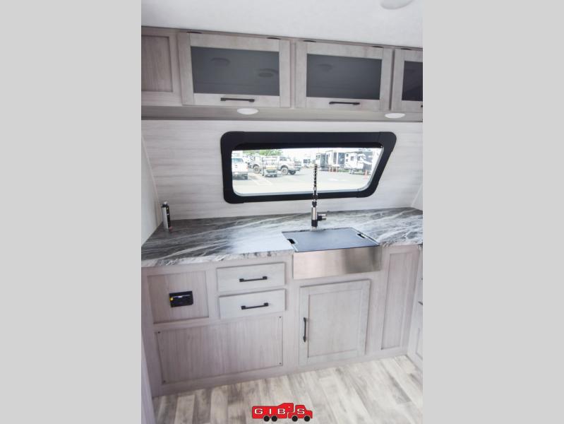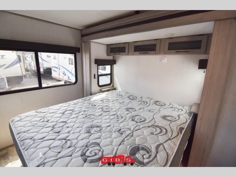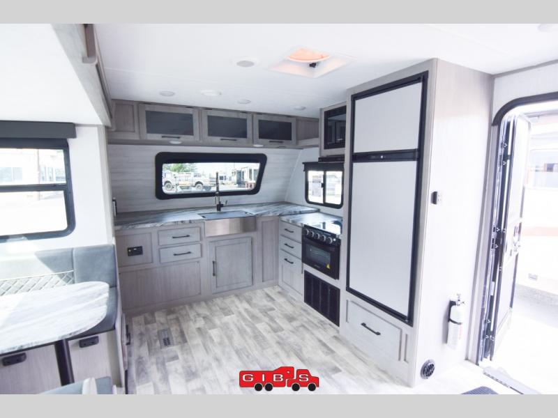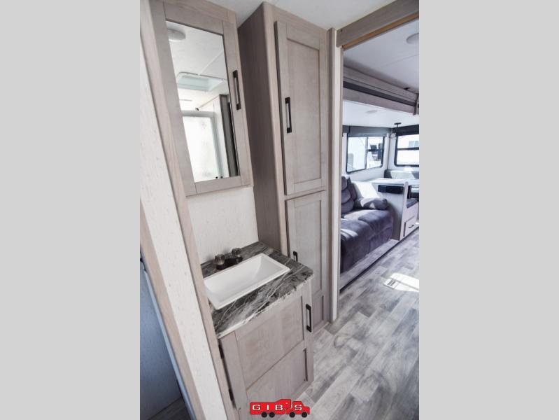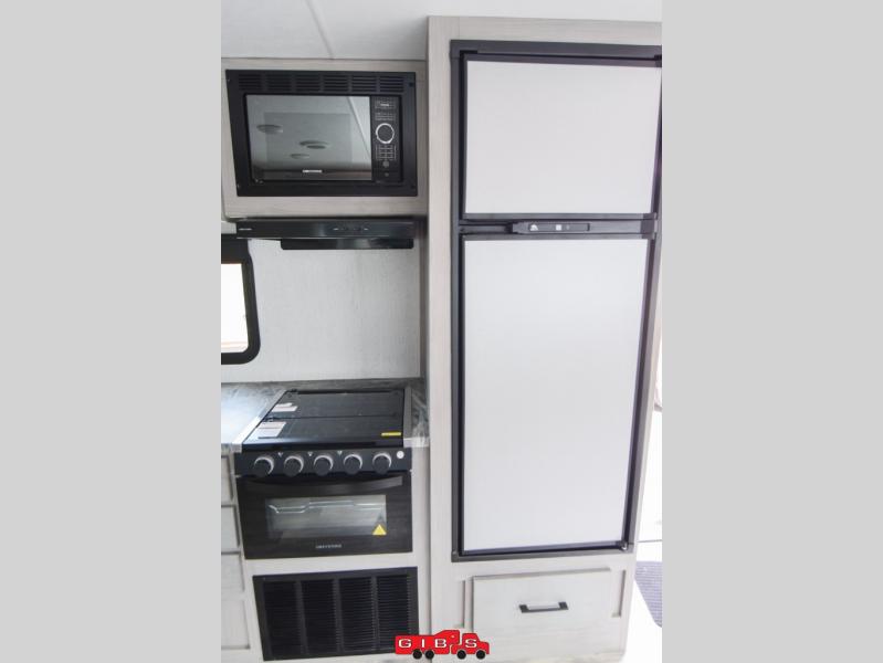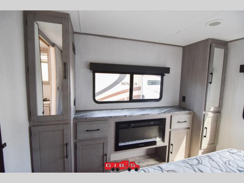 You will love every minute spent in this spacious travel trailer that includes dual slide outs! The walk through bath will create a rear master bedroom you are sure to love. You can sleep soundly on the king bed and relax in front of the bedroom fireplace. The chef of your group will have ample counter space in the kitchen to prep meals, plus there is a 10 cu. ft. refrigerator to store perishables. After dinner, get comfortable on the theater seats or play a game at the booth dinette. Or you may just want to relax outdoors under the 20' power awning with LED lights!