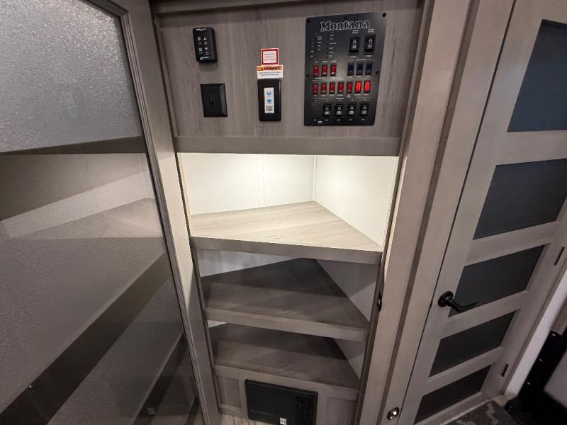 Take charge of how you camp in one of these luxurious Keystone RV Montana fifth wheels! The high quality SolarFlex 200 delivers an affordable solar energy system that eliminates the guesswork and can be built on to meet your exact needs. Keystone's exclusive 12" I-beam chassis with z-frame technology has been reengineered to be stronger, lighter and built for "the long haul". A few other construction features you will appreciate include a Road Armor suspension, 2" thick CNC routed, dual-layered lauan high gloss fiberglass sidewalls, a MaxTurn front cap with KeyShield automotive-grade paint, and a fully walkable roof with an Alpha seamless TPO membrane system. Their strikingly stylish interiors are designed with beautiful maple hardwood cabinetry, a pull-down spice rack, and an indoor/outdoor central vacuum, plus a Blade Pure airflow system for clean, quite, and cool air!