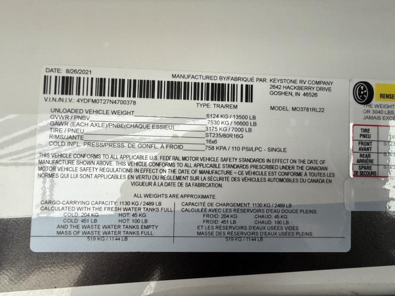 Used 2022 Keystone RV Montana 3781RL Fifth Wheel