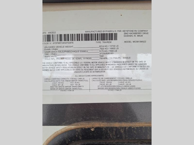 Used 2022 Keystone RV Montana 3813MS Fifth Wheel