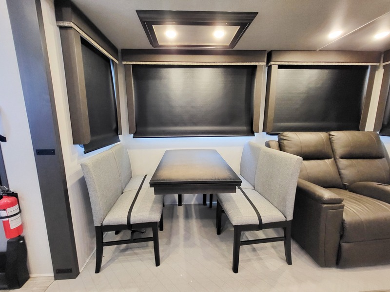 Live the high life with a Keystone Montana High Country fifth wheel! You'll have all the luxury you need with these units. They come with a Road Armor™ shock absorbing hitch pin, a MaxTurn™ front cap with KeyShield™ automotive-grade paint, a fully walkable roof with Alpha seamless TPO membrane system, and an insulated underbelly with forced hot air and electric tank heaters. The Road Armor™ suspension has 360° vibration control for a smooth ride, and the Ground Control® four-point electric auto-leveling with hitch memory will make set-up quite easy. The interior is elegantly appointed with the Thomas Payne Collection furniture, hardwood decorative slide-out fascia, Beauflor® vinyl throughout with Syntec® woven flooring in main slide outs, accent crown molding, and Mystic Ash cabinetry. You'll also have a central vacuum that you can use to clean up unforeseen messes.