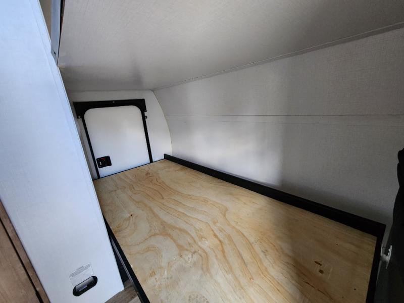 The rear bedroom offers a comfortable bed, while the dinette conversion provides additional sleeping space for family or guests. Clever storage compartments keep your belongings organized, making packing for any adventure simple and stress-free.