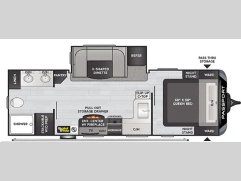 Each one of these Keystone RV Passport GT travel trailers offer grand style and multi-functional features! They have best-in-class storage for big things like paddle boards and small things like sleeping bags. There's no need for cordless drills and bending over to put the jacks down, simply push a button and the power stabilizer jacks do the rest. The one piece polypropylene underbelly protects your units vitals in all weather conditions. Exclusive to Keystone is the Tru-fit slide construction and the Hyper Deck flooring which is more resilient, stronger and lighter than the traditional laminated wood construction, plus it resists water and water damage. In-floor heating ducts help to heat the unit with the 30,000 BTU furnace and the color-coded unified wiring makes it easier to see where they connect to. Come find the one that best fits your needs today!