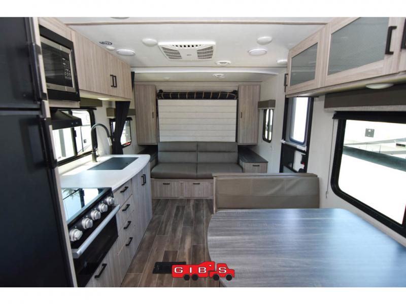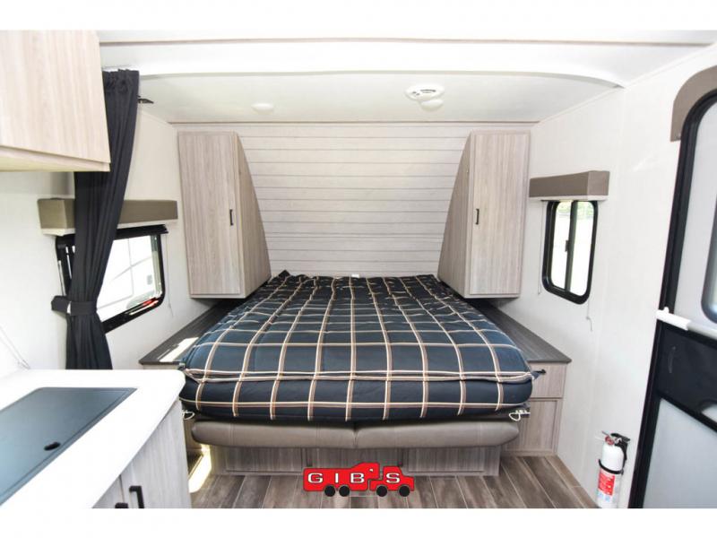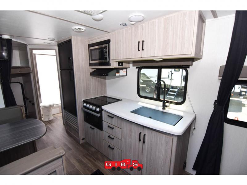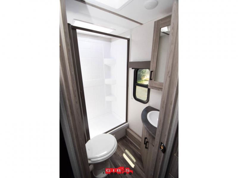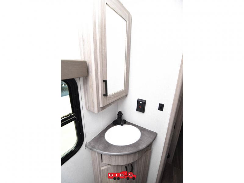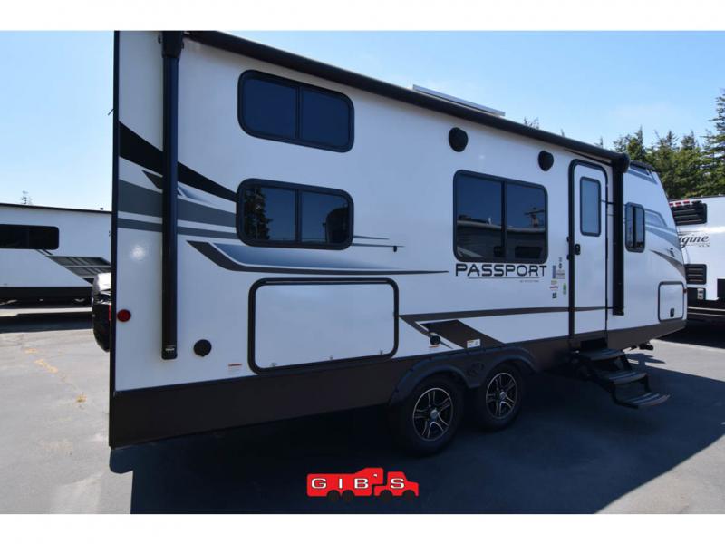 The Passport SL travel trailers by Keystone RV come in a compact design with travel-friendly lengths that are lightweight and easy to tow behind many smaller crossover SUVs. You will find several residential-style features such as durable Armstrong vinyl flooring, upgraded window treatments and valances, and bathroom countertops. The exterior shower with hot and cold water is very useful as you get cleaned up before entering the RV, wash your pets, or even rinse a few dishes outside. The Passport also now contains a HyperDeck flooring system which is a high-performance, water-resistant RV floor that comes as a breakthrough design from the Keystone Innovation Lab. This flooring is more resilient, stronger, and lighter than traditional laminated wood construction.