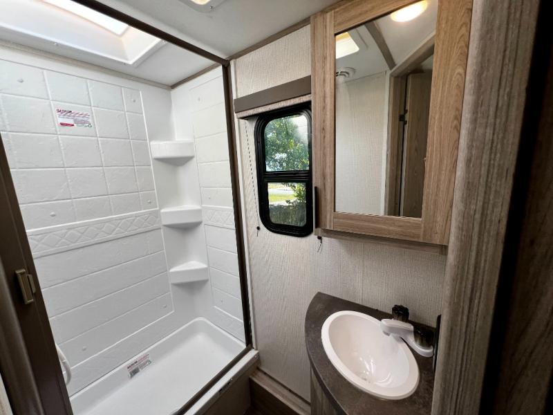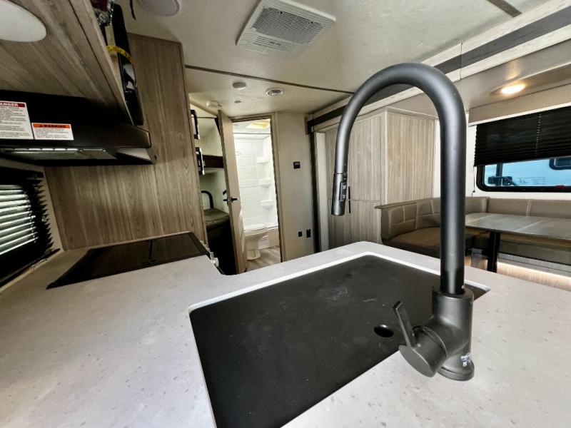 The Passport SL Series travel trailers by Keystone RV come in a compact design with travel-friendly lengths that are lightweight and easy to tow behind many smaller crossover SUVs. You will find several residential-style features such as durable Armstrong vinyl flooring, upgraded window treatments and valances, and bathroom countertops. The exterior shower with hot and cold water is very useful as you get cleaned up before entering the RV, wash your pets, or even rinse a few dishes outside. The Passport also now contains a HyperDeck flooring system which is a high-performance, water-resistant RV floor that comes as a breakthrough design from the Keystone Innovation Lab. This flooring is more resilient, stronger, and lighter than traditional laminated wood construction. Choose your favorite Passport SL Series today, and start going everywhere!