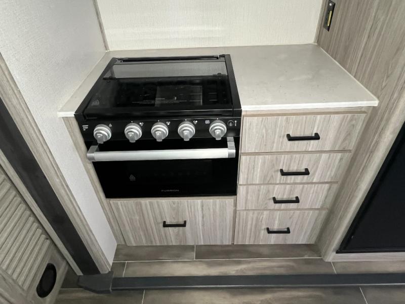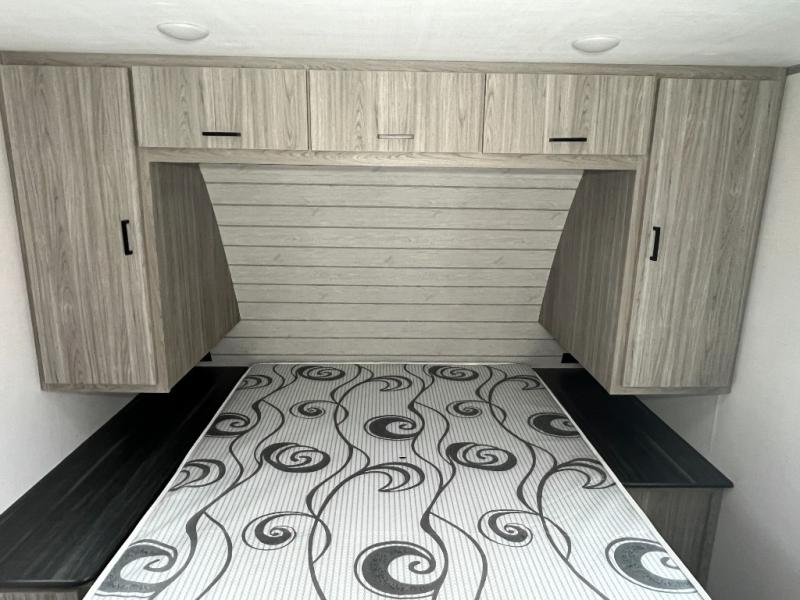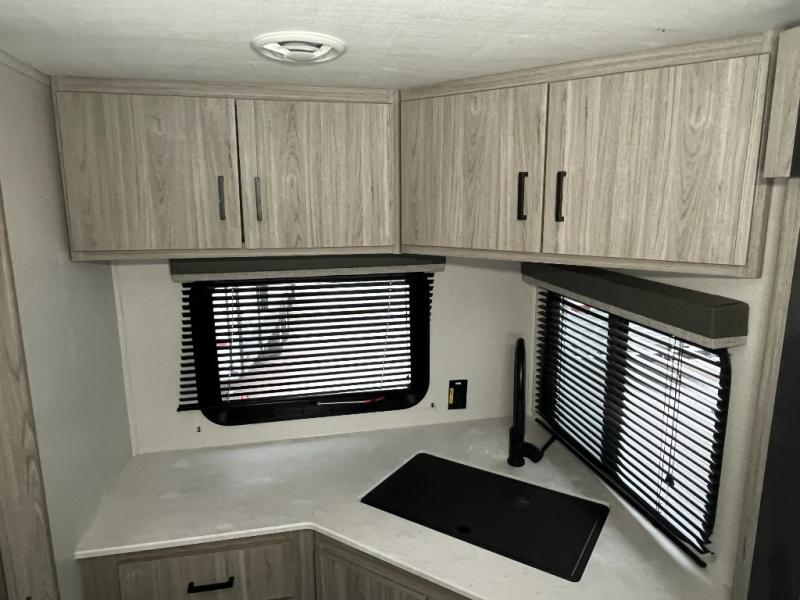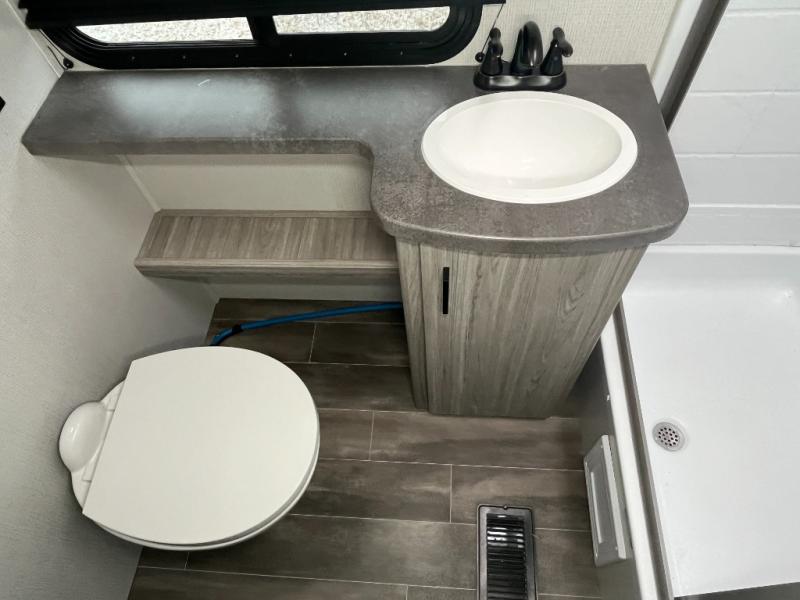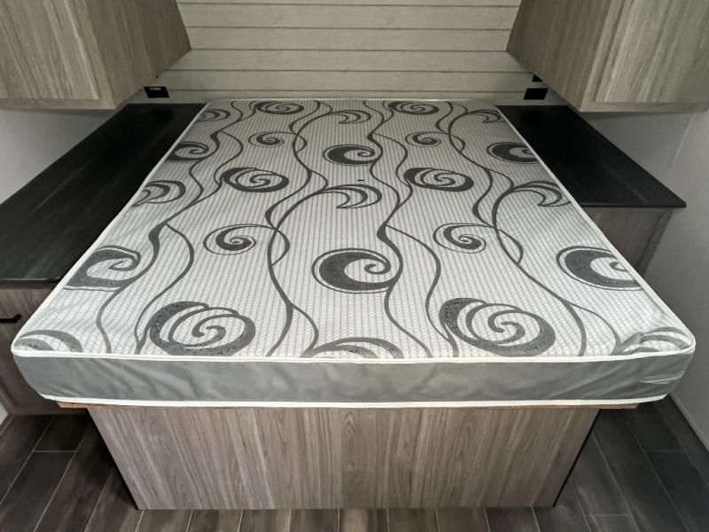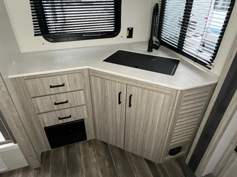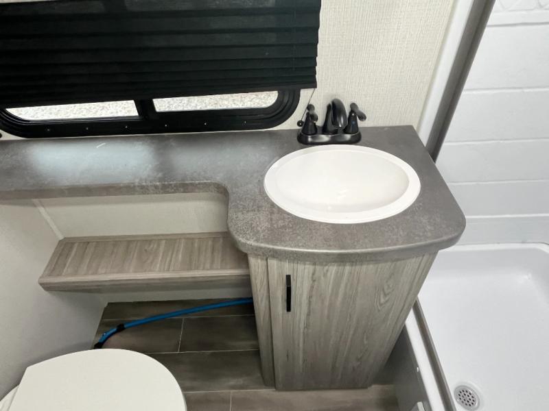 The Passport SL travel trailers by Keystone RV come in a compact design with travel-friendly lengths that are lightweight and easy to tow behind many smaller crossover SUVs. You will find several residential-style features such as durable Armstrong vinyl flooring, upgraded window treatments and valances, and bathroom countertops. The exterior shower with hot and cold water is very useful as you get cleaned up before entering the RV, wash your pets, or even rinse a few dishes outside. The Passport also now contains a HyperDeck flooring system which is a high-performance, water-resistant RV floor that comes as a breakthrough design from the Keystone Innovation Lab. This flooring is more resilient, stronger, and lighter than traditional laminated wood construction.