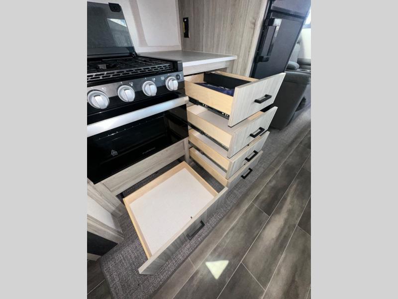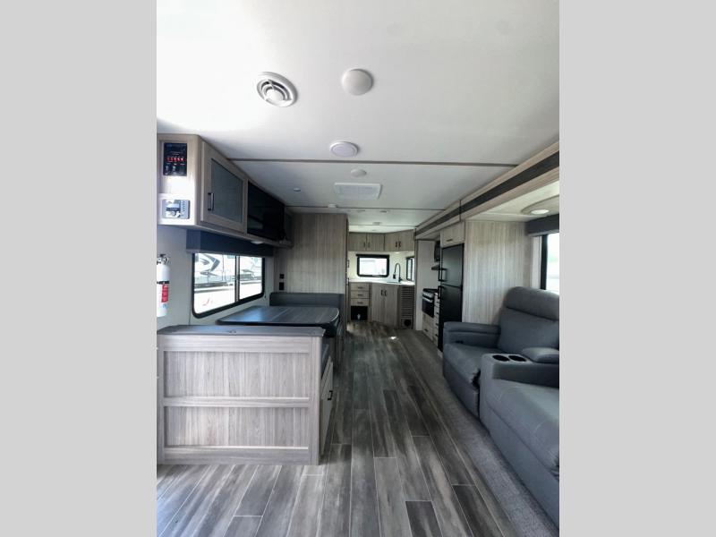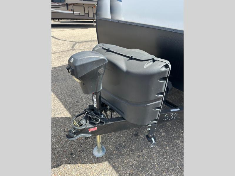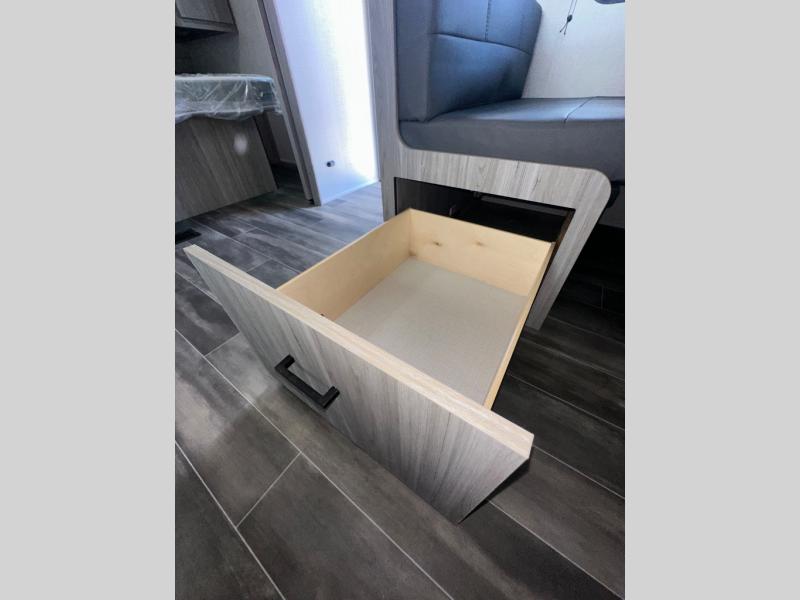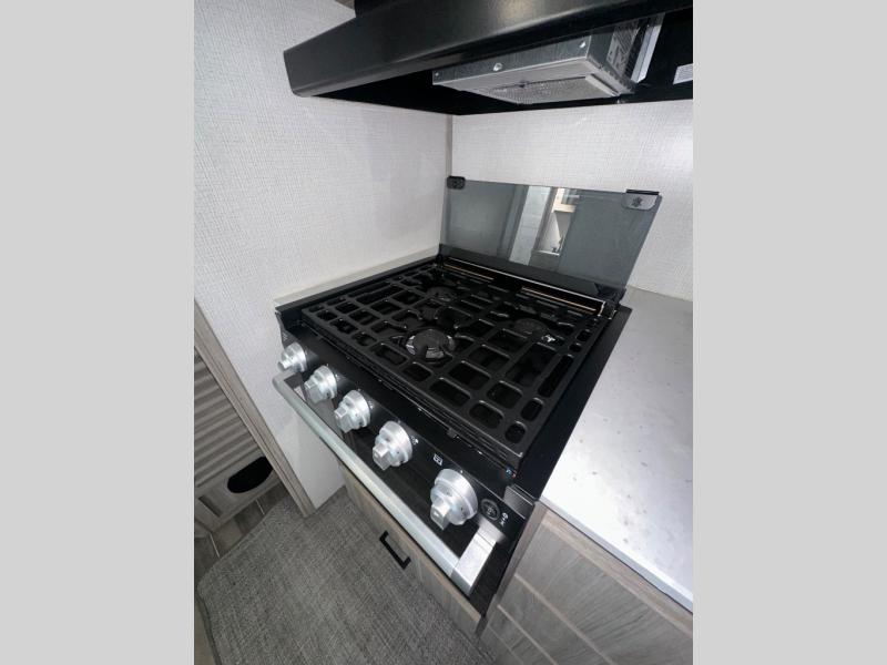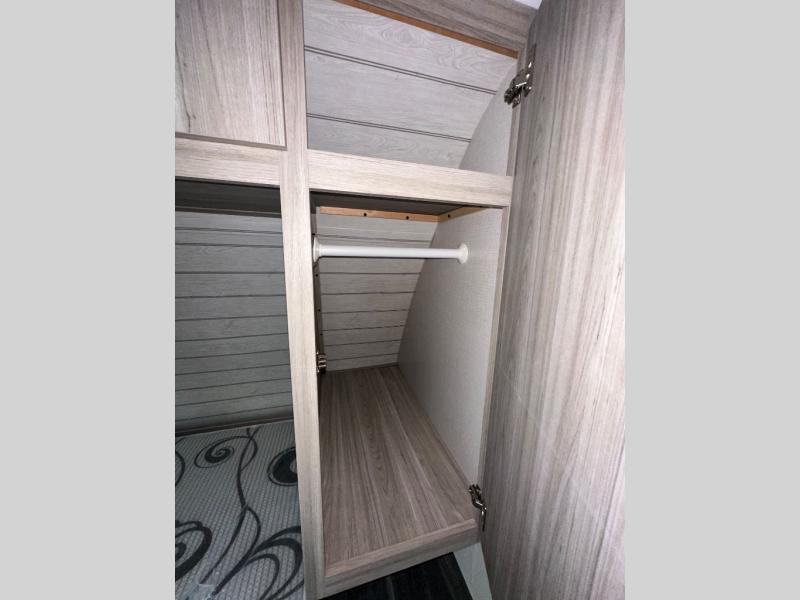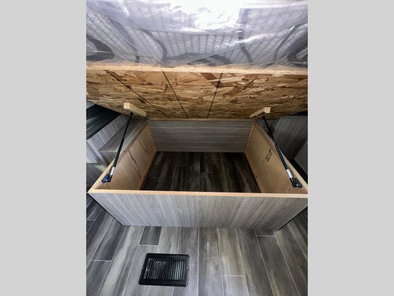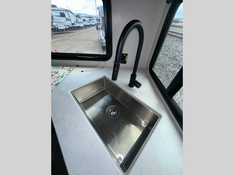 The Passport SL travel trailers by Keystone RV come in a compact design with travel-friendly lengths that are lightweight and easy to tow behind many smaller crossover SUVs. You will find several residential-style features such as durable Armstrong vinyl flooring, upgraded window treatments and valances, and bathroom countertops. The exterior shower with hot and cold water is very useful as you get cleaned up before entering the RV, wash your pets, or even rinse a few dishes outside. The Passport also now contains a HyperDeck flooring system which is a high-performance, water-resistant RV floor that comes as a breakthrough design from the Keystone Innovation Lab. This flooring is more resilient, stronger, and lighter than traditional laminated wood construction.