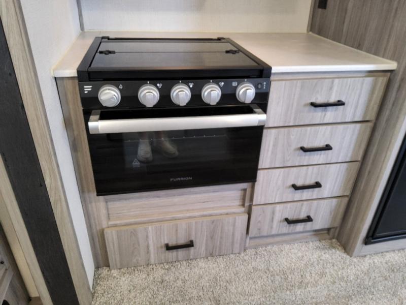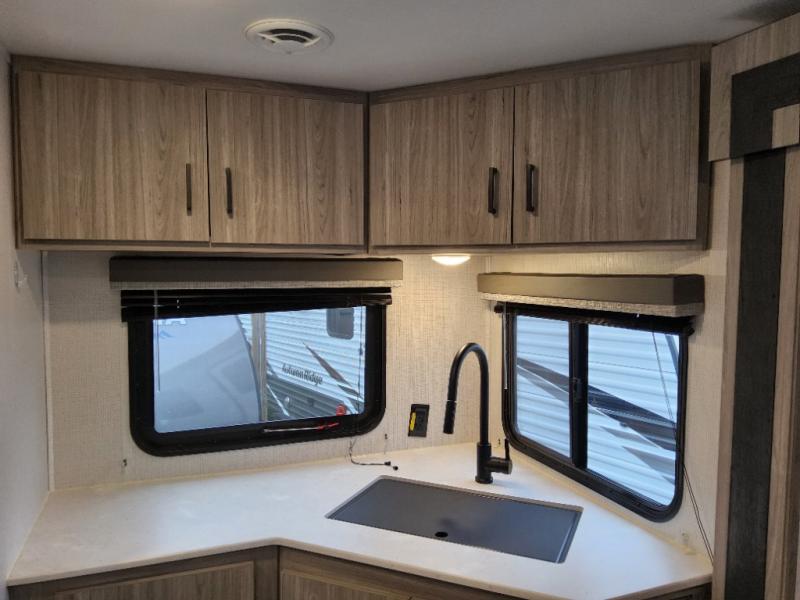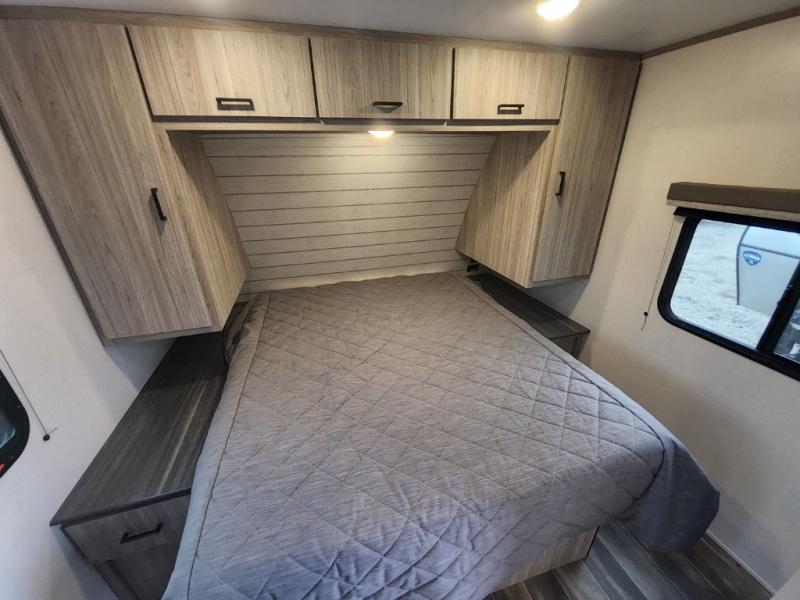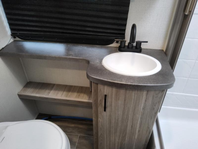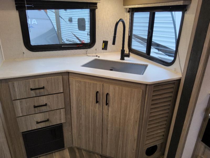 The Passport SL travel trailers by Keystone RV come in a compact design with travel-friendly lengths that are lightweight and easy to tow behind many smaller crossover SUVs. You will find several residential-style features such as durable Armstrong vinyl flooring, upgraded window treatments and valances, and bathroom countertops. The exterior shower with hot and cold water is very useful as you get cleaned up before entering the RV, wash your pets, or even rinse a few dishes outside. The Passport also now contains a HyperDeck flooring system which is a high-performance, water-resistant RV floor that comes as a breakthrough design from the Keystone Innovation Lab. This flooring is more resilient, stronger, and lighter than traditional laminated wood construction.