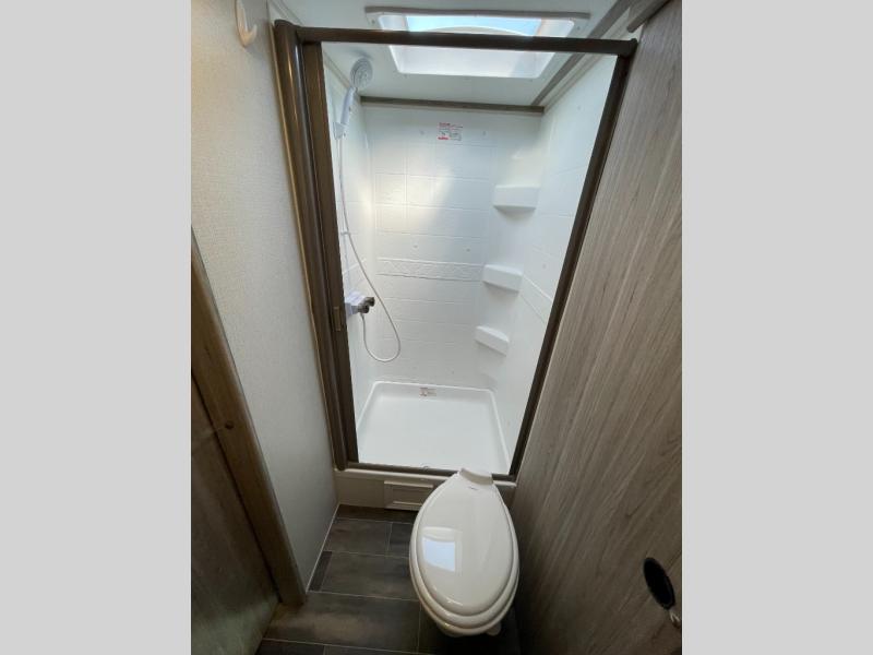 The Passport SL travel trailers by Keystone RV come in a compact design with travel-friendly lengths that are lightweight and easy to tow behind many smaller crossover SUVs. You will find several residential-style features such as durable Armstrong vinyl flooring, upgraded window treatments and valances, and bathroom countertops. The exterior shower with hot and cold water is very useful as you get cleaned up before entering the RV, wash your pets, or even rinse a few dishes outside. The Passport also now contains a HyperDeck flooring system which is a high-performance, water-resistant RV floor that comes as a breakthrough design from the Keystone Innovation Lab. This flooring is more resilient, stronger, and lighter than traditional laminated wood construction.