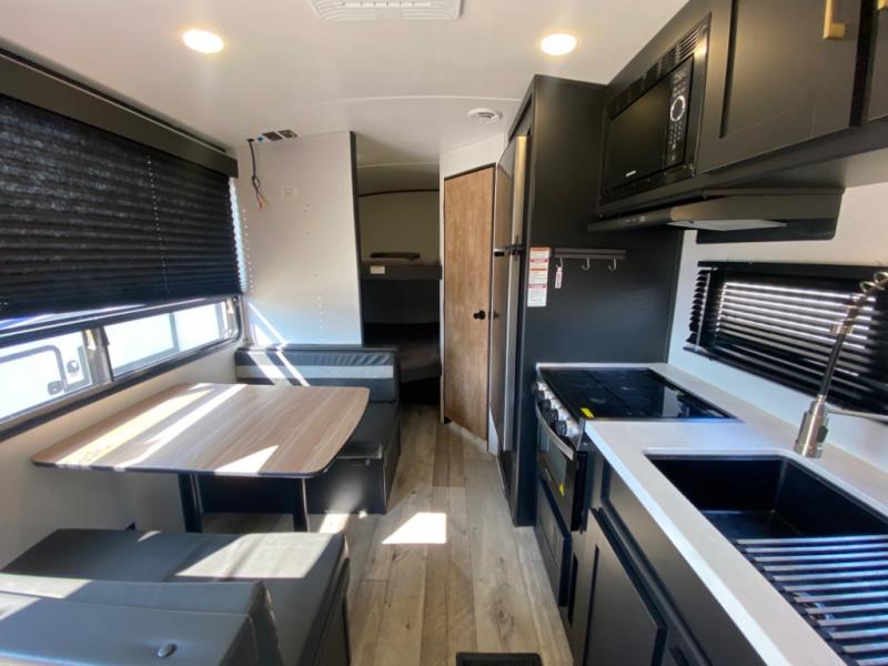 You are sure to love this Keystone Springdale travel trailer from the front private bedroom to the many different storage spaces for all of your camping needs! This trailer is fabulous for a larger group because it has a set of double-size bunks which will provide compact yet accommodating sleeping arrangements for your kids or friends. There is also a convenient full bathroom located next to the bunks which is super convenient, and allows everyone to get cleaned up before bedtime. You can enjoy your delicious meals at the booth dinette or even while relaxing on the sofa, and both of these can transform into extra sleeping spaces whenever needed.