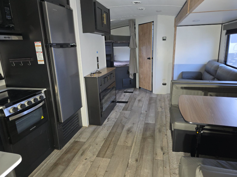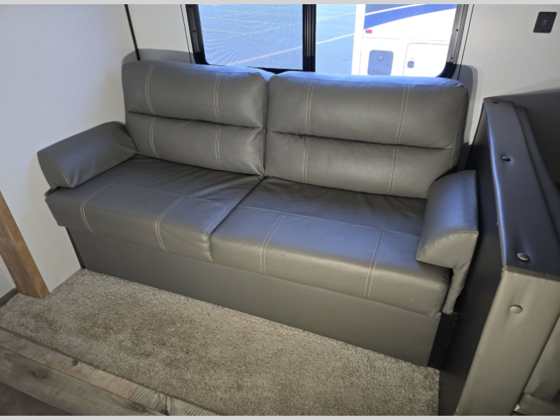 You will have plenty of room for hosting and sleeping up to nine individuals throughout your vacation in this travel trailer. There is a queen bed in the front private bedroom, double-size bunks in the rear, plus a sofa and a booth dinette slide out that folds down so that you can have extra sleeping space. You will have places for relaxing, cooking, playing games, or talking late into the night with your loved ones inside and outside. Don't be afraid to bring along as much as you want thanks to the walk-in pantry, the overhead cabinets, the dual closets in the bedroom, plus the exterior storage for your outdoor gear.