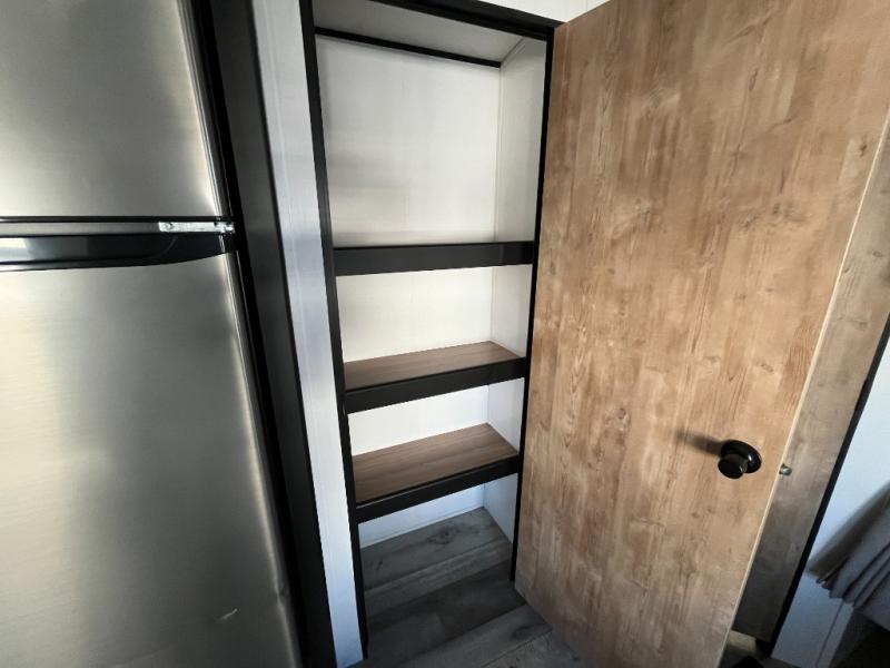 For the larger group, this Springdale is the perfect travel trailer because it features a set of double-size bunks, two entry doors, a large slide out, and sleeping for nine people. Step inside using the main entry and see just how spacious the combined kitchen and living area are. For a quiet retreat, enjoy the front bedroom where you can expect to get a great night's rest. The back of this trailer contains a set of double-size bunks that the kids or your friends will surely love. Or, you can easily take along extra guests. There is a convenient ladder to access the top bunk, and you will also enjoy the front exterior pass-through storage compartment for all of your outdoor camping gear.
