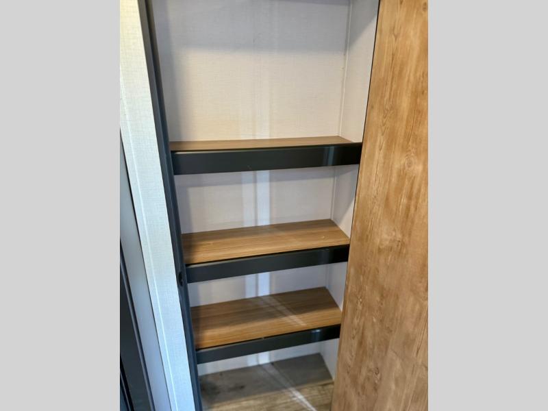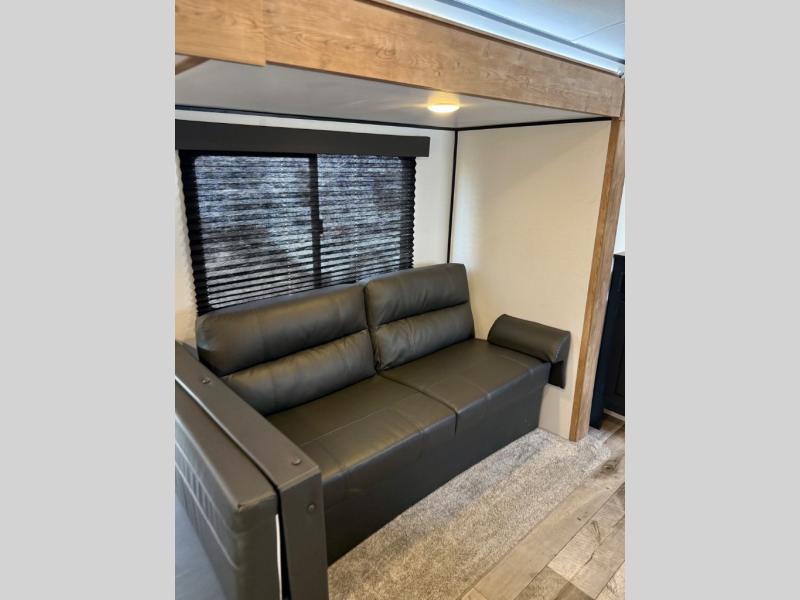 For the larger group, this Springdale is the perfect travel trailer because it features a set of double-size bunks, two entry doors, a large slide out, and sleeping for nine people. Step inside using the main entry and see just how spacious the combined kitchen and living area are. For a quiet retreat, enjoy the front bedroom where you can expect to get a great night's rest. The back of this trailer contains a set of double-size bunks that the kids or your friends will surely love. Or, you can easily take along extra guests. There is a convenient ladder to access the top bunk, and you will also enjoy the front exterior pass-through storage compartment for all of your outdoor camping gear.