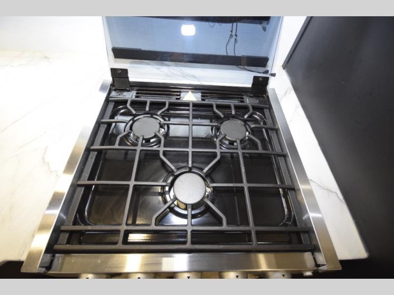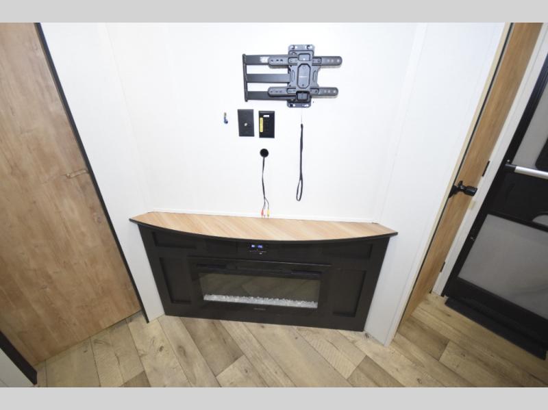 Double-Size Bunk Beds, Spacious Closet/Pantry, Cozy Fireplace, 21' Power Awning, Outdoor Kitchen with Cooktop & Mini Fridge, SolarFlex 200 Solar Power System