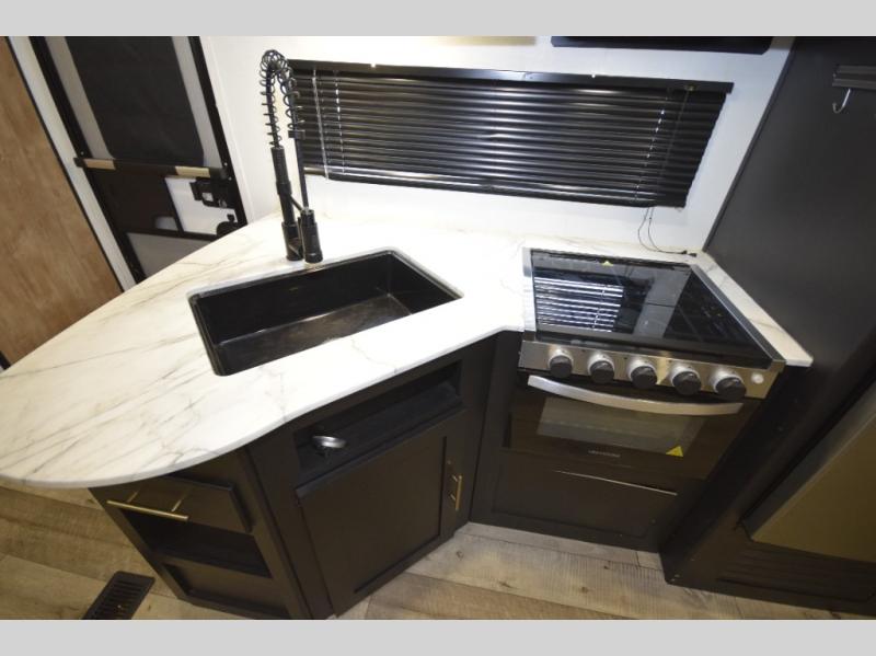 Set the stage for great campfire stories and BBQ dinners with a spacious outdoor living setup. The exterior kitchen lets you stay in the action while grilling burgers or prepping breakfast, while the large awning provides shade during the day and shelter at night. It's the perfect blend of form and function for hosting friends or enjoying quiet evenings under the stars.