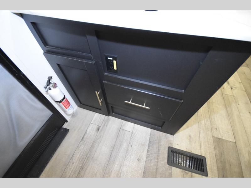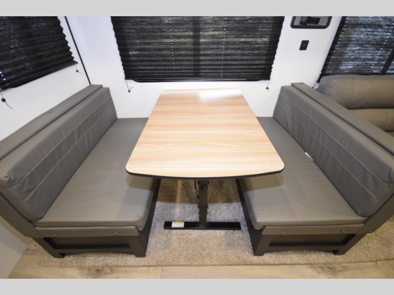 Step inside and stretch out—thanks to a large slide-out, there's room to gather without feeling cramped. The booth dinette and sofa offer plush seating by the entertainment center and fireplace, making this space ideal for game nights, rainy-day lounging, or even extra sleeping space. Double pantries and a large closet keep your snacks, gear, and groceries neatly tucked away but always within reach.