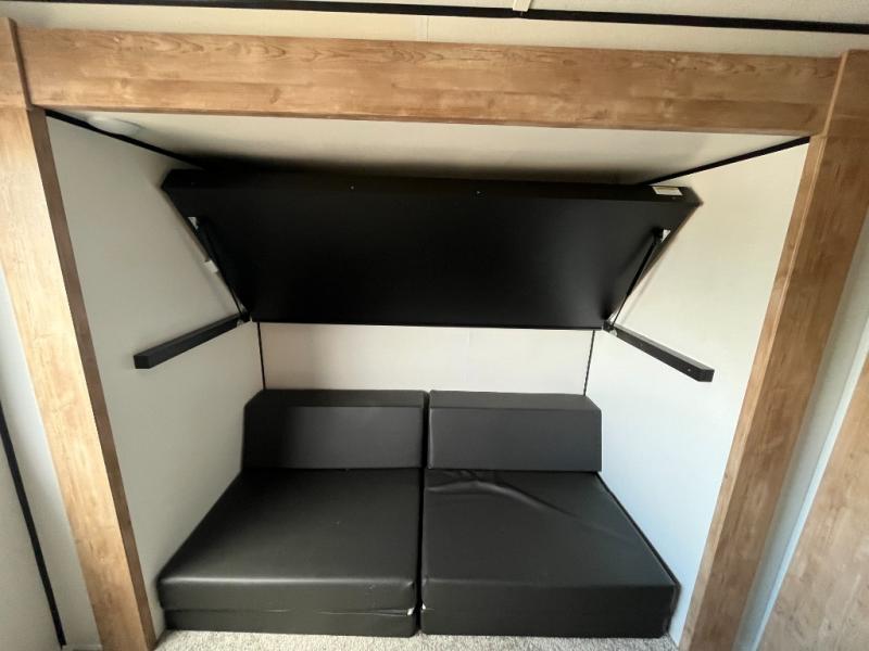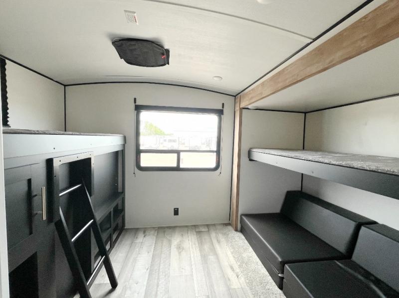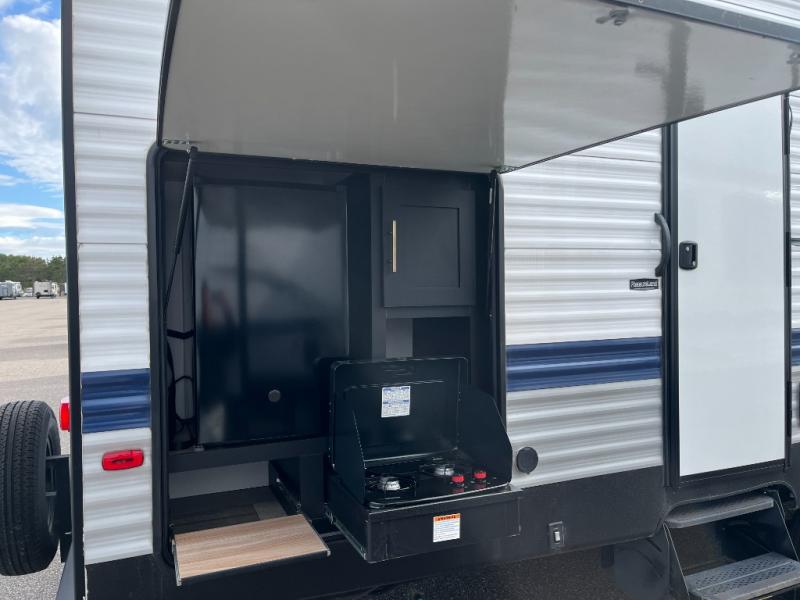 Lots of space, a bunkhouse for the kids or your friends, an interior kitchen and an outdoor kitchen for the chef in the family, two entry doors, and so much more makes this Keystone Springdale travel trailer perfect for a larger family or group of friends to enjoy. The perfect feature for those who love cooking and dining outside is the outdoor kitchen. The second exterior entry makes accessing the bath easy from the outside, and the private bunkhouse features a flip-up bunk above a Fun Lounger, as well as another bunk above an entertainment center on the opposite side. And in the private front bedroom, you can enjoy a bit of seclusion from the rest of the trailer and get a great night's sleep.
