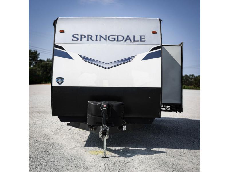With any Keystone Springdale travel trailer, you will have a friction hinge entry door with sturdy LCI SolidStep steps, a pass-through storage compartment for your outdoor gear, and reliable Dexter E-Z Lube axles to maneuver your Springdale down the road and into the campsites. Some of the Keystone Exclusives provide 12V color-coded wiring with easy-to-trace circuits which is better than conventional RV wiring allowing a faster diagnosis for quicker repairs, and the streamlined heat distribution that uses in-floor heat vents for more efficiency for uninterrupted air flow. Also included, the Blade high performance air flow system that delivers 30% more air flow. The interior gives you pressed kitchen countertops, pleated night shades, and designer upholstered window valances for easy care and style, and more depending on the Springdale you choose!