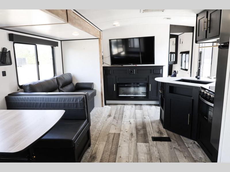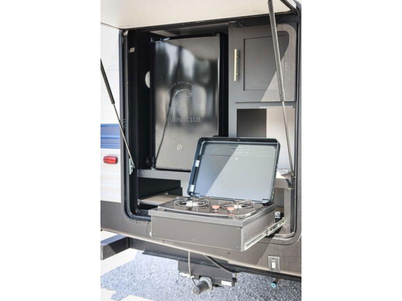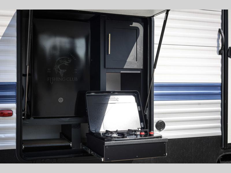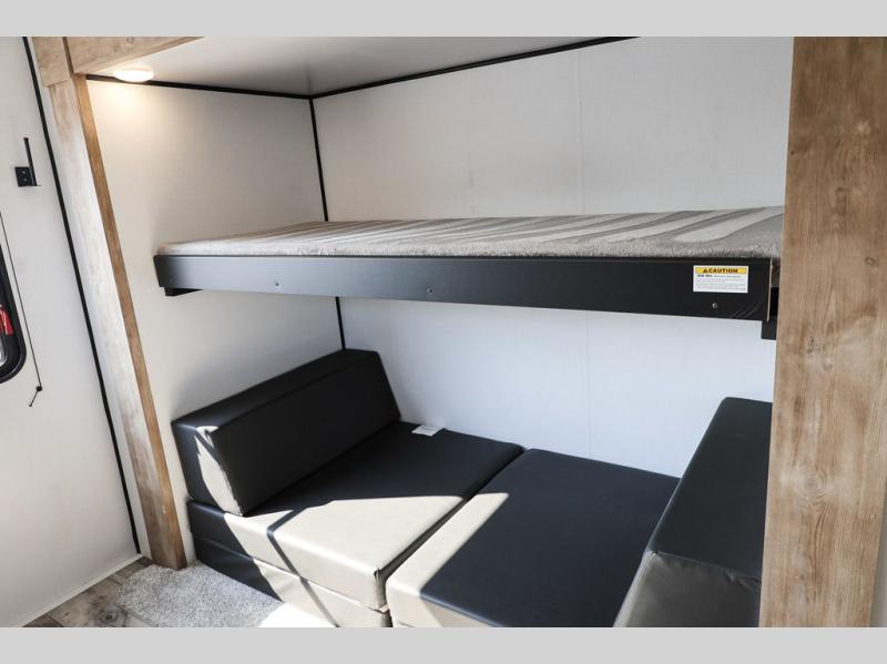Lots of space, a bunkhouse for the kids or your friends, an interior kitchen and an outdoor kitchen for the chef in the family, two entry doors, and so much more makes this Keystone Springdale travel trailer perfect for a larger family or group of friends to enjoy. The perfect feature for those who love cooking and dining outside is the outdoor kitchen. The second exterior entry makes accessing the bath easy from the outside, and the private bunkhouse features a flip-up bunk above a Fun Lounger, as well as another bunk above an entertainment center on the opposite side. And in the private front bedroom, you can enjoy a bit of seclusion from the rest of the trailer and get a great night's sleep.