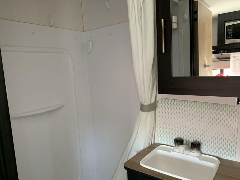 Get ready to enjoy the outdoors when you have this Mini at your campsite! You can hike, bike and/or fish all day then return to your own Queen Miller bed with fold down sofa that offers a versatile space. You will also find two closets for your clothing and shoe storage to keep everything tidy. The booth dinette slide gives you drawer storage and a space to dine. And the kitchen allows the cook to whip up hot meals, and the full bathroom will keep everyone refreshed.