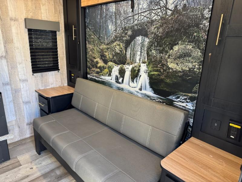 Get ready to enjoy the outdoors when you have this Mini at your campsite! You can hike, bike and/or fish all day then return to your own Queen Miller bed with fold down sofa that offers a versatile space. You will also find two closets for your clothing and shoe storage to keep everything tidy. The booth dinette slide gives you drawer storage and a space to dine. And the kitchen allows the cook to whip up hot meals, and the full bathroom will keep everyone refreshed.