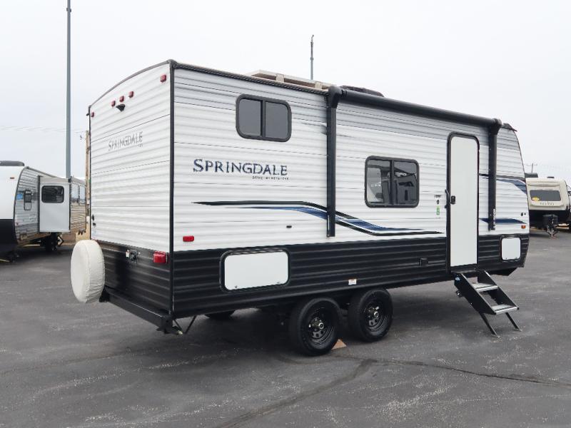 With any Springdale Mini travel trailer by Keystone, the SolarFlex 200 provides high-quality RV solar energy allowing you to take charge of how you camp! Each is built lightweight and includes Keystone Exclusives, plus the exterior has maximum 16" O.C. wood sidewall construction, Dexter E-Z Lube axles, LCI SolidStep entry, and a pass-through compartment for storage along the exterior for outdoor gear. The interior provides pressed kitchen countertops, LED lighting, metal mini blinds, pleated night shades, and more depending on the Mini you choose.