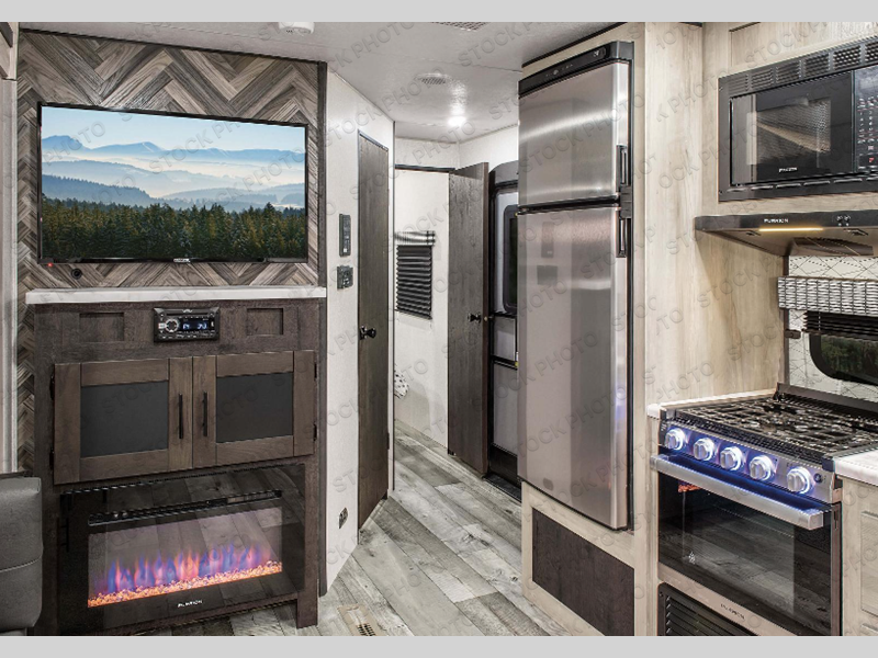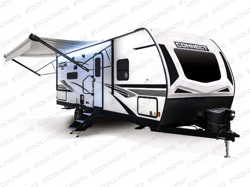 Hitch up this Connect travel trailer and head out for a fabulous weekend away! You will enjoy added space in the living area because of the single slide that holds the booth dinette, and another convenient feature is the dual-entry bathroom that can be accessed from the main hallway or the bedroom. You will be quite surprised to find a king-size bed inside the bedroom, but you will be immensely happy that it's there come bedtime. A pass-through storage on the exterior allows you to bring along extra gear, and the interior is kept cozy on chilly fall evenings with the 30" fireplace.