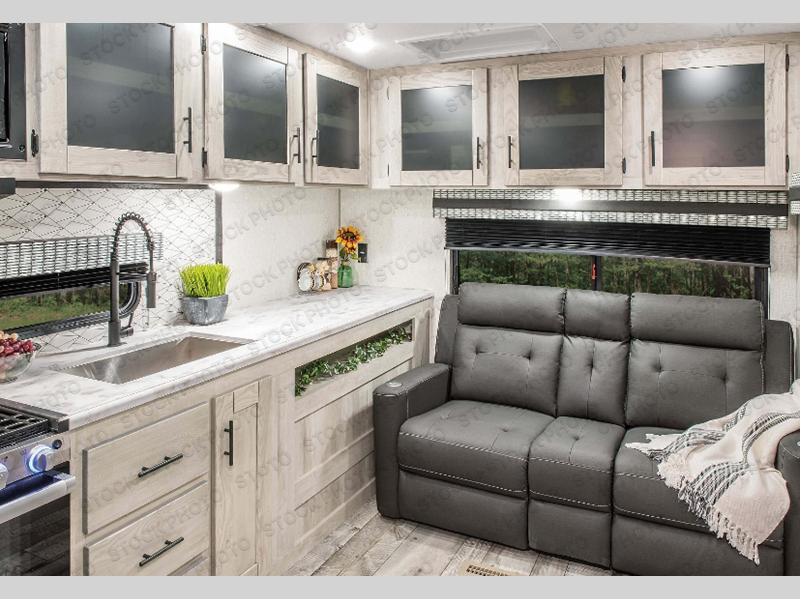 The KZ Connect travel trailer comes with an RV Airflow System which optimizes the airflow for your air conditioner by increasing the airflow by an average of 40%. This improves performance, speeds up cooling times, and reduces noise in your trailer. Some of the other helpful features found on the Connect are the heated, insulated, and enclosed underbelly, the exterior docking station, the fiberglass front cap with front windshield, the 82" interior ceiling height, and the protective front diamond plate. There are some useful technological features, like the two LED motion-sensor lights, the HDMI and USB charge, OneControl monitor panel, and the multi-media entertainment system with DVD. The KZ Engage is powered by OneControl, and it monitors battery levels and controls slide rooms, the leveling system, the awning, inside/outside lighting, and the TPMS prep.