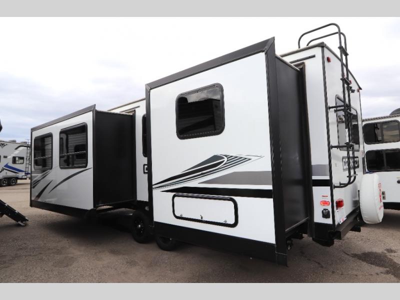 The KZ Connect travel trailer comes with an RV Airflow System which optimizes the airflow for your air conditioner by increasing the airflow by an average of 40%. This improves performance, speeds up cooling times, and reduces noise in your trailer. Some of the other helpful features found on the Connect are the heated, insulated, and enclosed underbelly, the exterior docking station, the fiberglass front cap with front windshield, the 82" interior ceiling height, and the protective front diamond plate. There are some useful technological features, like the two LED motion-sensor lights, the HDMI and USB charge, OneControl monitor panel, and the multi-media entertainment system with DVD. The KZ Engage is powered by OneControl, and it monitors battery levels and controls slide rooms, the leveling system, the awning, inside/outside lighting, and the TPMS prep.