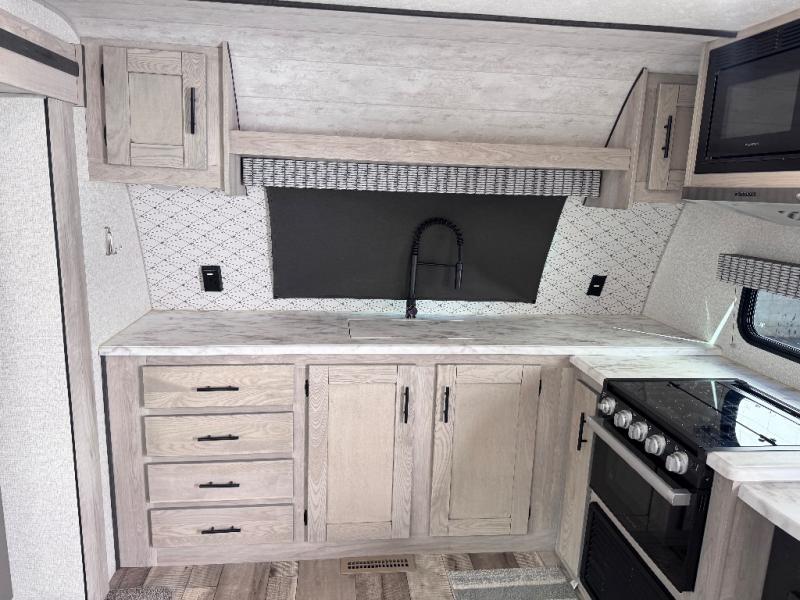 Each Connect SE travel trailer by KZ includes an NXG frame foundation that is constructed with high-strength low-alloy prime steel, uses the CNC controlled rail fabrications and camber, plus eliminates frame failures, construction issues, and corrosion! The Climate package provides added insulation to extend your camping season year-round with a fully enclosed, insulated and heated underbelly to protect the tanks and pipes. Some top features include the 17-inch range with illuminated control knobs, the seamless countertops with a deep undermount stainless steel kitchen sink including a sink cover for added countertop space, and a black high-rise faucet. You will also enjoy the KZ Engage package that is powered by OneControl to monitor and control the battery levels, the slide(s), the leveling system, the awning(s), plus the inside and outside lighting. Choose your favorite today!