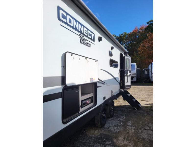 Each Connect SE travel trailer by KZ includes an NXG frame foundation that is constructed with high-strength low-alloy prime steel, uses the CNC controlled rail fabrications and camber, plus eliminates frame failures, construction issues, and corrosion! The Climate package provides added insulation to extend your camping season year-round with a fully enclosed, insulated and heated underbelly to protect the tanks and pipes. Some top features include the 17-inch range with illuminated control knobs, the seamless countertops with a deep undermount stainless steel kitchen sink including a sink cover for added countertop space, and a black high-rise faucet. You will also enjoy the KZ Engage package that is powered by OneControl to monitor and control the battery levels, the slide(s), the leveling system, the awning(s), plus the inside and outside lighting. Choose your favorite today!