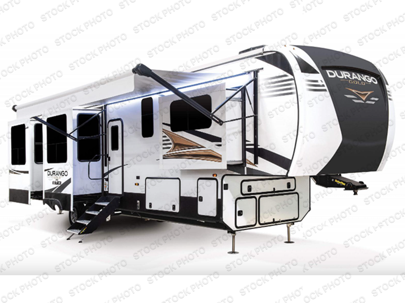 With any KZ Durango Gold full-time luxury fifth wheel, you will enjoy the look of modern farmhouse cabinetry, upgraded kitchen appliances such as a 30" convection microwave and 24" oven with four burner range, plus a stainless dishwasher. Other top features include an electric tilt bed with Serta Comfort foam king mattress, theater seating with cupholders and a USB plug, plus heat, massage, and power recline/decline features. You will also appreciate a handy central vacuum system with multiple attachments that stores out of sight. Each Durango Gold is constructed with six-sided aluminum framing, and has heated, insulated and an enclosed underbelly. It is also constructed with Tufflex roofing material which is flexible, puncture resistant, and reflective. Some additional standout features include a fully-vented attic system, and a Durango Towing package which includes a 2" towing receiver hitch with 4-pin wire harness connection. This will provide you with 3,000 lbs. of towing capacity. Come choose your favorite lightweight high-profile wide body luxury fifth wheel today!
