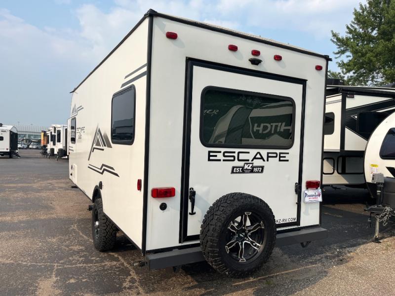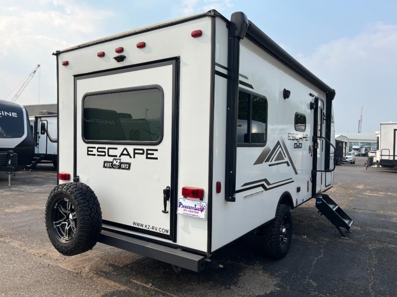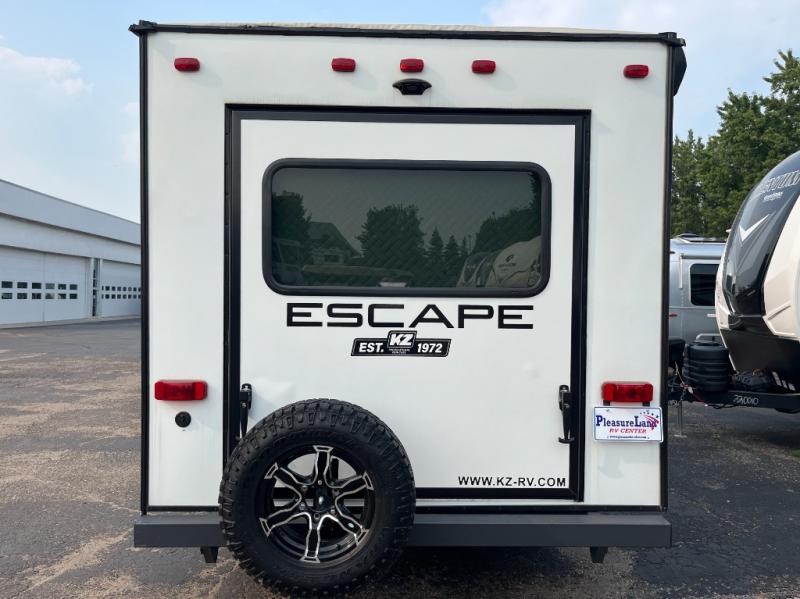 Each one of these KZ Escape ultra lightweight travel trailers were built for campers who want an ultimate adventure! An aerodynamic front profile with a front windshield makes them easier to tow, and the white exterior fiberglass with fender skirts will turn heads down the highway. A 3/8" fully walkable roof with Dicor Tufflex PVC roofing membrane and diamond plate rock guard will protect your unit. The interiors are decorated with beautiful rail style Amish-crafted cabinet doors with modern handles, seamless countertops, residential grade linoleum throughout, and pleated shades covering the tinted windows. The mandatory KZ Convenience package includes interior control switches on overhead end cabinets, a friction hinge entry door with shade prep, and an omnidirectional HDTV antenna with WiFi prep. Come find the right one for you today!
