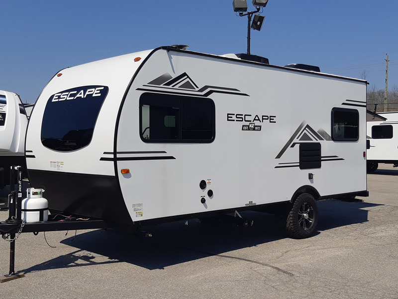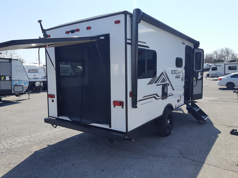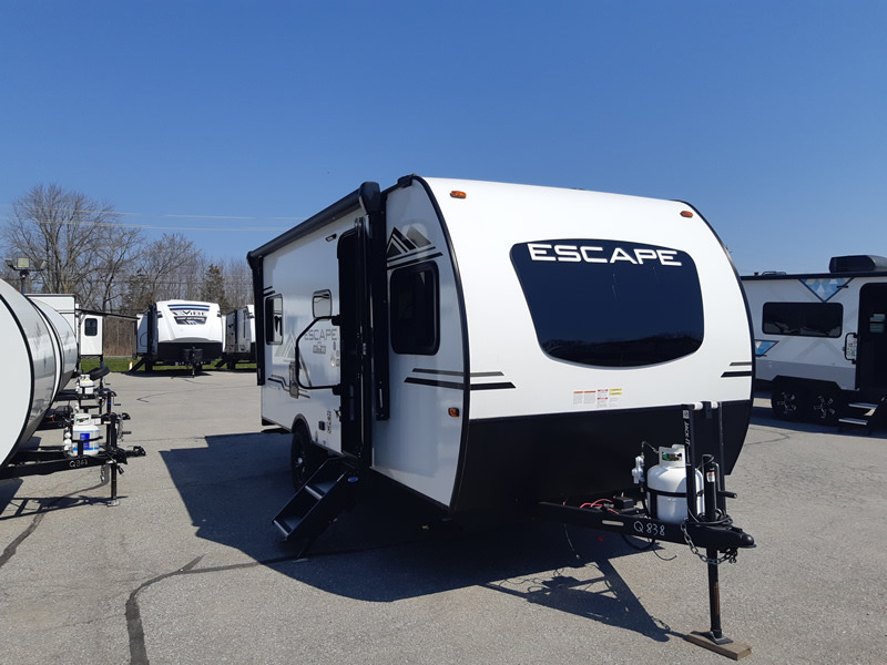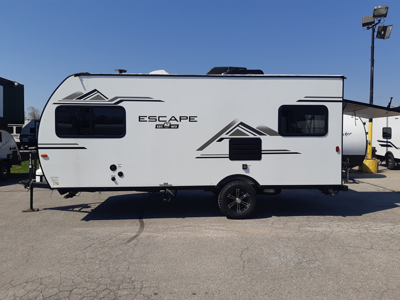 Each one of these KZ Escape ultra lightweight travel trailers were built for campers who want an ultimate adventure! An aerodynamic front profile with front windshield makes them easier to tow, and the white exterior fiberglass with fender skirts will turn heads down the highway. A 3/8" fully walkable roof with Dicor Tufflex PVC roofing membrane and diamond plate rock guard will protect your unit. The interiors are decorated with beautiful rail style Amish-crafted cabinet doors with modern handles, seamless countertops, residential grade linoleum throughout, and pleated shades covering the tinted windows. The mandatory KZ Convenience package includes interior control switches on overhead end cabinets, a friction hinge entry door with shade prep, and an omnidirectional HDTV antenna with WiFi prep. Come find the right one for you today!