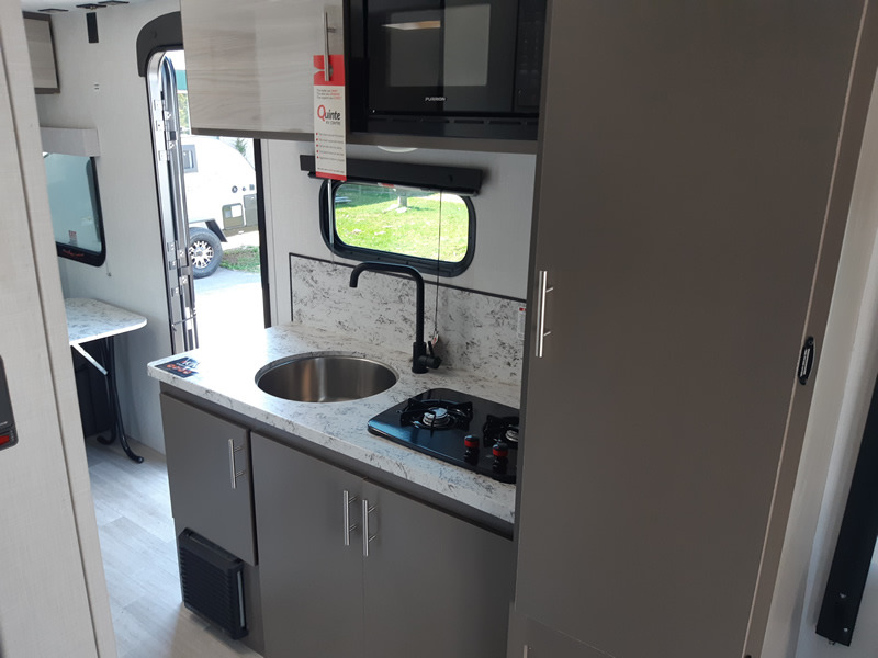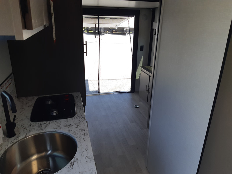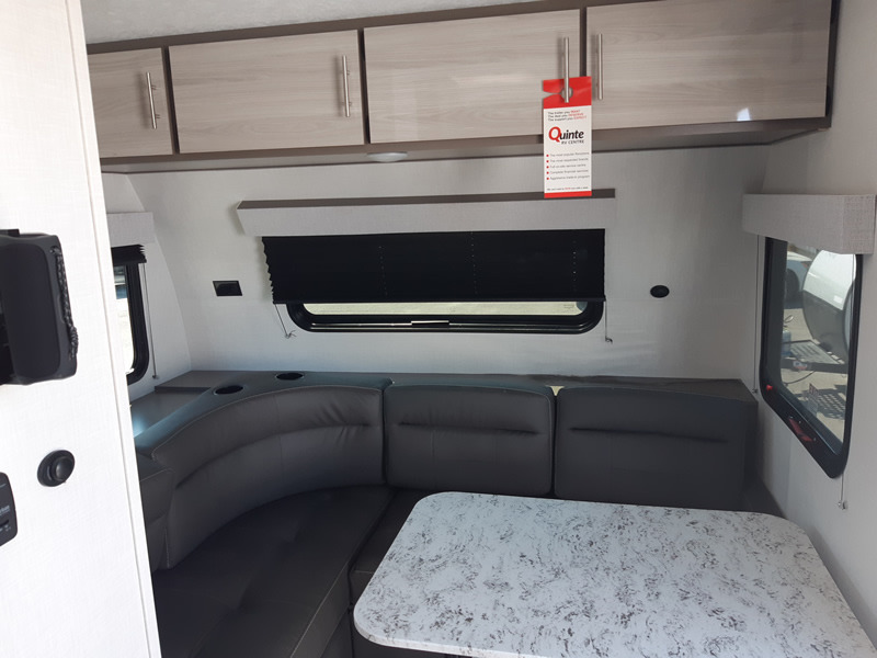 This travel trailer is the perfect couple's getaway! It has a rear 54" x 80" power bed to enjoy a good night's rest, a private shower and toilet to freshen up, and a hatch door to let in some fresh air and look out at your beautiful scenery. You can prepare your best meals with the two burner cooktop, the 8 cu. ft. 12V refrigerator, and the microwave. The front "L" lounge comes with a table, a hidden ottoman, and a storage area behind it, plus it can be an extra sleeping space for a guest. The 14' power awning will protect you rain or shine and comes with a LED light strip to highlight the good times!
