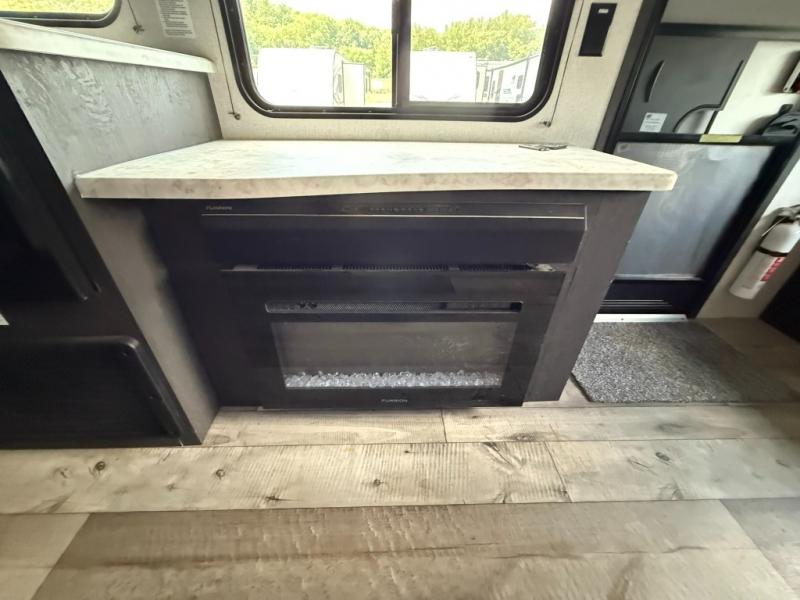 This model features dual entry doors which will make camping easier than ever! You can enter in through the front private bedroom, or the rear living area. The walk-through bath is easily accessible to everyone, and the large slide included in this model will provide the dog space to stretch out. Your crew can play a game around the U-shaped dinette after dinner, or head outdoors to relax under the 20' power awning with LED lights. You'll also find a 70" sofa in the rear living area that will be perfect for overnight guests. Don't let this model slip away!