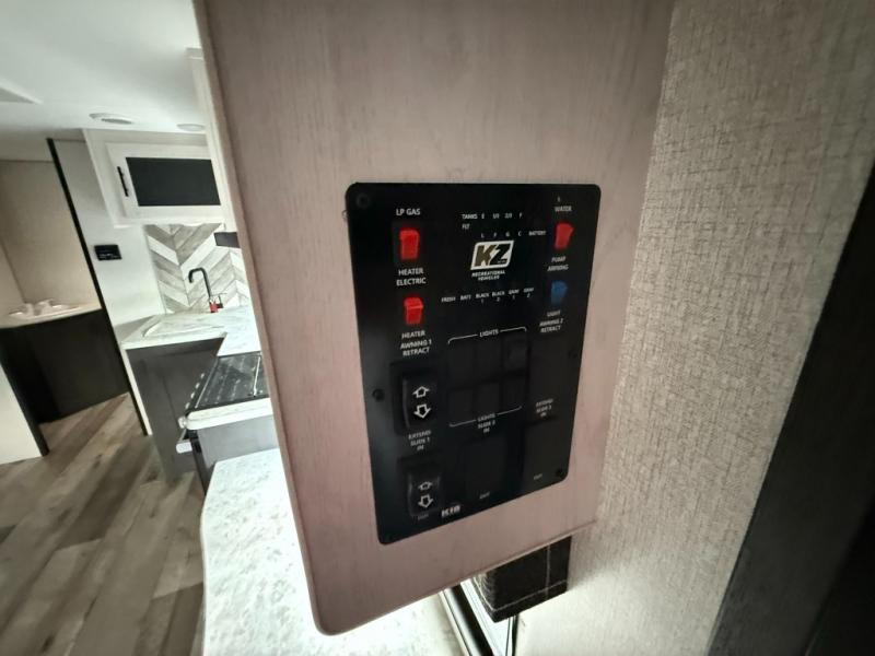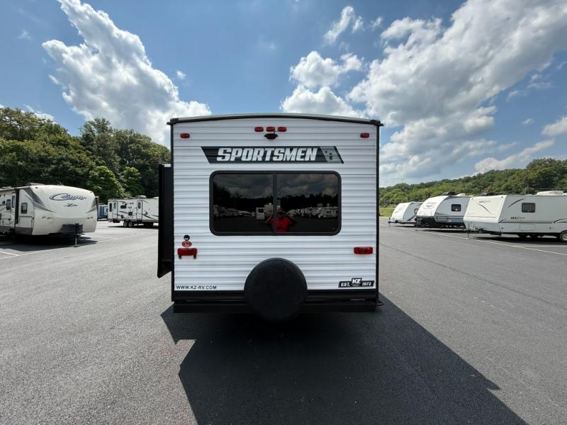 Each Sportsmen SE travel trailer and toy hauler by KZ is constructed with KZ exclusive tough shield exterior metal, one-piece seamless walk-on Tufflex roofing material, and a fully enclosed, insulated, and heated underbelly. You will appreciate the RV Airflow System that optimizes the airflow in your A/C system for a more evenly and quietly-cooled trailer. Some of the exterior conveniences you'll find are the four stabilizer jacks, nitrogen-filled tires, an exterior shower, and a Leash Latch with a bonus beverage opener. You'll feel right at home with residential-grade linoleum, a black residential kitchen faucet, large overhead cabinets, a shower surround, and much more!