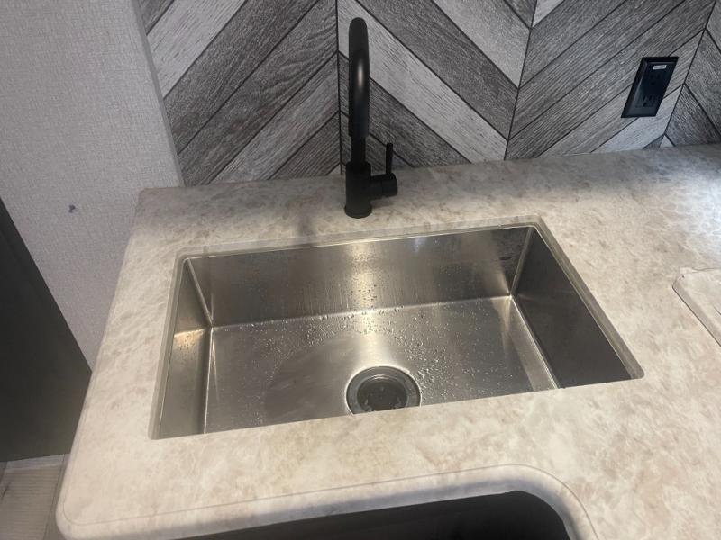 Each Sportsmen SE travel trailer and toy hauler by KZ is constructed with KZ exclusive tough shield exterior metal, one-piece seamless walk-on Tufflex roofing material, and a fully enclosed, insulated, and heated underbelly. You will appreciate the RV Airflow System that optimizes the airflow in your A/C system for a more evenly and quietly-cooled trailer. Some of the exterior conveniences you'll find are the four stabilizer jacks, nitrogen-filled tires, an exterior shower, and a Leash Latch with a bonus beverage opener. You'll feel right at home with residential-grade linoleum, a black residential kitchen faucet, large overhead cabinets, a shower surround, and much more!