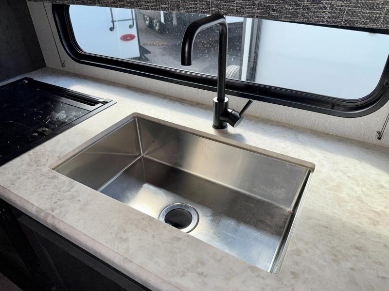Each Sportsmen SE travel trailer and toy hauler by KZ is constructed with KZ exclusive tough shield exterior metal, one-piece seamless walk-on Tufflex roofing material, and a fully enclosed, insulated, and heated underbelly. You will appreciate the RV Airflow System that optimizes the airflow in your A/C system for a more evenly and quietly-cooled trailer. Some of the exterior conveniences you'll find are the four stabilizer jacks, nitrogen-filled tires, an exterior shower, and a Leash Latch with a bonus beverage opener. You'll feel right at home with residential-grade linoleum, a black residential kitchen faucet, large overhead cabinets, a shower surround, and much more!