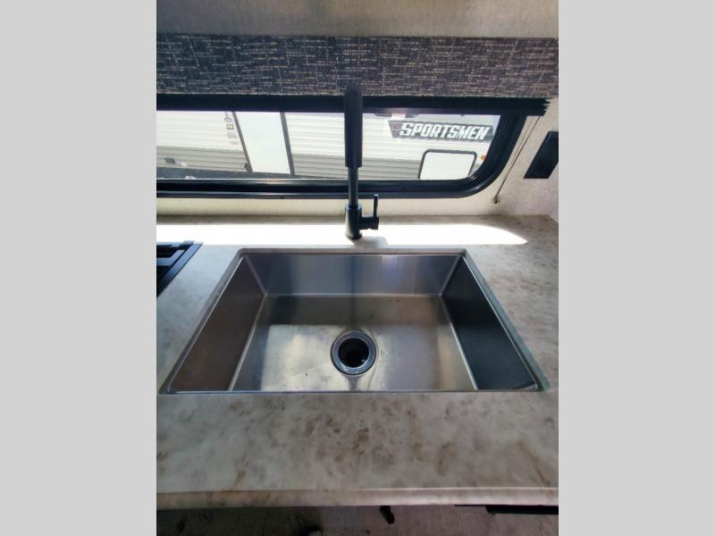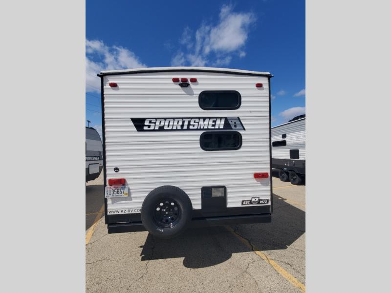 Each Sportsmen SE travel trailer and toy hauler by KZ is constructed with KZ exclusive tough shield exterior metal, one-piece seamless walk-on Tufflex roofing material, and a fully enclosed, insulated, and heated underbelly. You will appreciate the RV Airflow System that optimizes the airflow in your A/C system for a more evenly and quietly-cooled trailer. Some of the exterior conveniences you'll find are the four stabilizer jacks, nitrogen-filled tires, an exterior shower, and a Leash Latch with a bonus beverage opener. You'll feel right at home with residential-grade linoleum, a black residential kitchen faucet, large overhead cabinets, a shower surround, and much more!