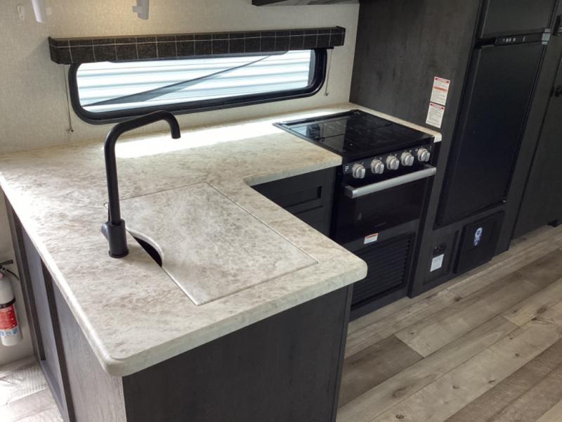 Each Sportsmen SE travel trailer and toy hauler by KZ is constructed with KZ exclusive tough shield exterior metal, one-piece seamless walk-on Tufflex roofing material, and a fully enclosed, insulated, and heated underbelly. You will appreciate the RV Airflow System that optimizes the airflow in your A/C system for a more evenly and quietly-cooled trailer. Some of the exterior conveniences you'll find are the four stabilizer jacks, nitrogen-filled tires, an exterior shower, and a Leash Latch with a bonus beverage opener. You'll feel right at home with residential-grade linoleum, a black residential kitchen faucet, large overhead cabinets, a shower surround, and much more!
